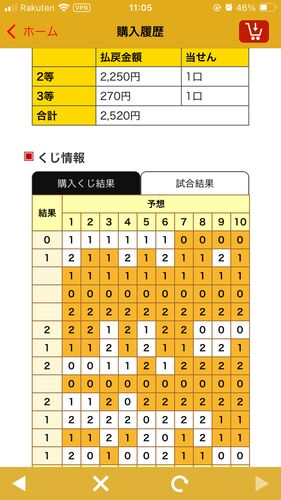 ただし、台風で、対象試合の13試合中のうちの4試合が中止となりました。キャリーオーバーを何回かしている事もあり、気合を入れて30口を購入してみました! 結果は、2等が1口、3等2口でした! 3000円使って、返ってきたのは2790円っと微妙に赤字です!w 当…