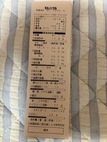 久しぶりに体組成を測ってみました! 分析 体脂肪率は、標準範囲内だが、上限値近い!(泣) 体重が重い!筋肉量が多いとは言えども、70キロ台に落としたい。。。 体型判定で初めて「筋肉質」と判定される! 今後の目標 筋肉量を維持、出来れば増やしなが…